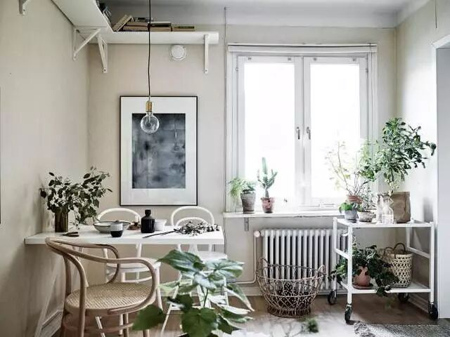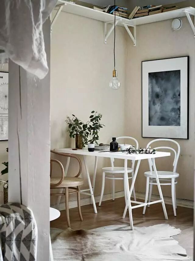 书桌改做小餐桌,既可以是办公场所,亦可以是一杯咖啡度过一个温暖的下午。